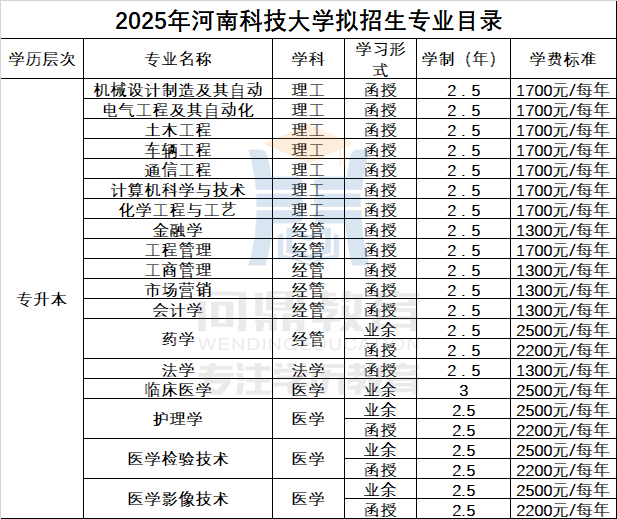 河南科技大学是省内的综合类高校,排名考前!作为成人高考报名的热门高校,学校的招生专业还是比较多的,其中涵盖了经管、理工、法学以及医学类,具体的招生专业以及学费如下: