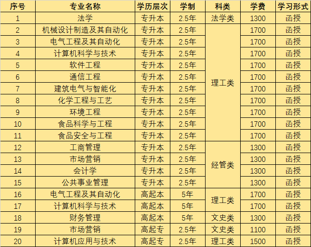 四、2025年郑州轻工业大学成人高考招生专业