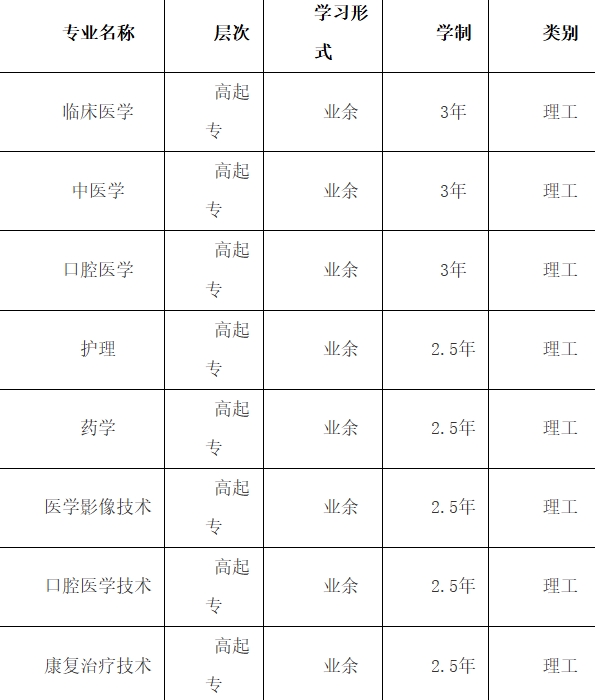 四、2025年郑州健康学院成人高考招生专业