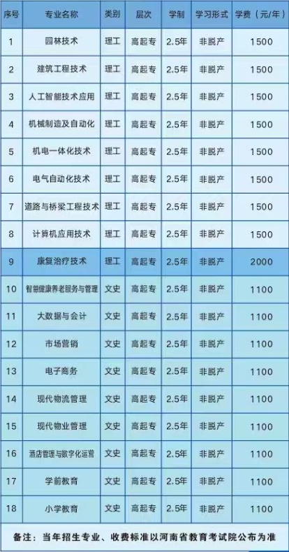 2025年许昌职业技术学院成考非脱产招生专业