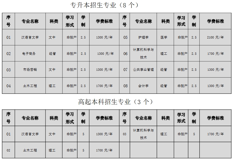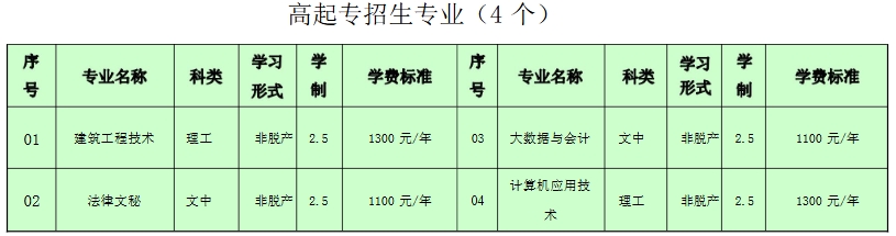 2025年黄淮学院成考非脱产招生专业